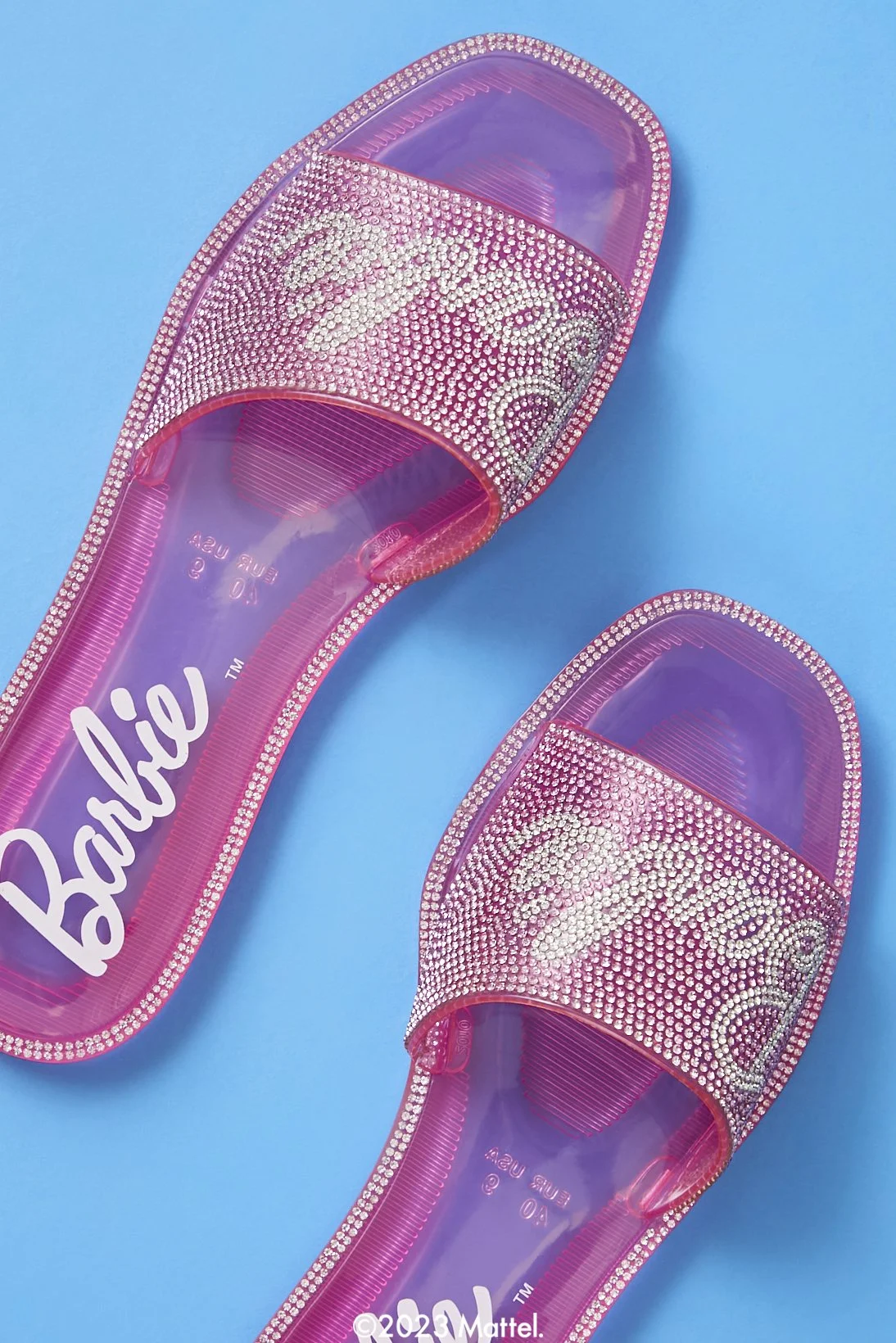 Designed summer footwear that embodies California-cool vibes, seamlessly echoing Barbie’s iconic brand and style.